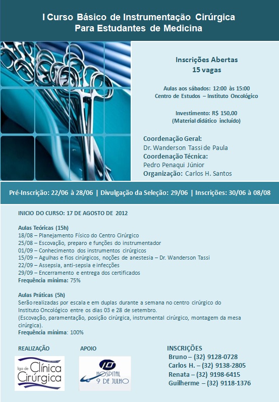 Membros selecionados para participar do I Curso Básico de Instrumentação Cirúrgica da LCC para Estudantes de Medicina